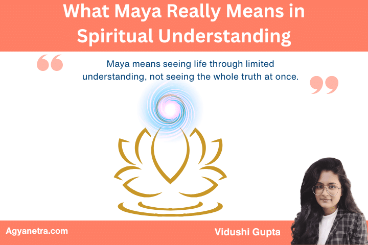 Maya refers to the way reality is perceived rather than reality itself. It explains how the mind, conditioning, and beliefs shape what we see and feel. According to Vidushi Gupta’s observations, Maya does not mean life is false, but that our interpretation of life is often limited and incomplete.