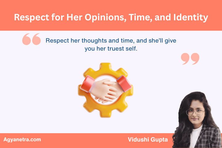 Vidushi Gupta, a respected voice on emotional intelligence in relationships, explains that women feel truly respected when they are allowed to grow without fear of losing connection. This kind of respect nourishes both partners in the long run.